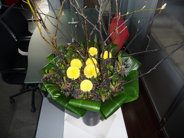 クロモジ、ピンポンマム、ビバーナムティナスベリー、ハラン。