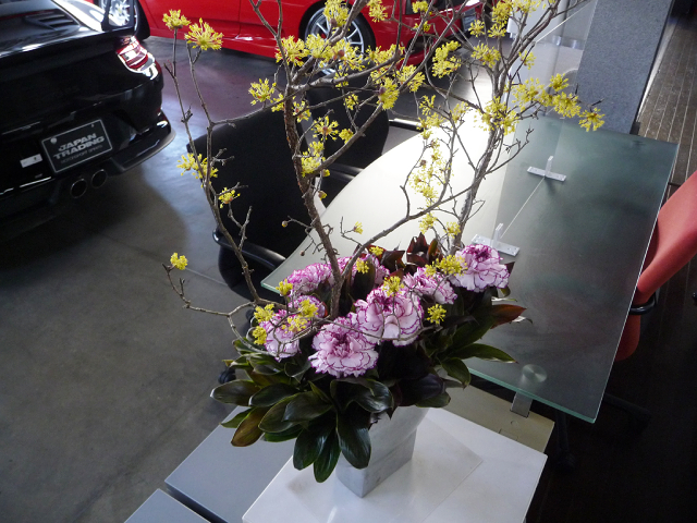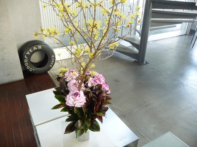 サンシュバイ、カーネーション、ドラセナ。