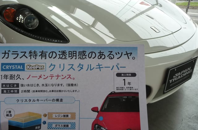 当店では クリスタルキーパー施工 を取り扱っております。クリスタルキーパーはポリッシャーを使わずに施工できるため、 塗装を削らずにツヤを蘇らせる、耐久性の高いガラス質コーティング です。施工後は 1年間メンテナンス不要。普段のお手入れは洗車だけで十分で、しかも汚れにくくなるため洗車回数がぐっ…
