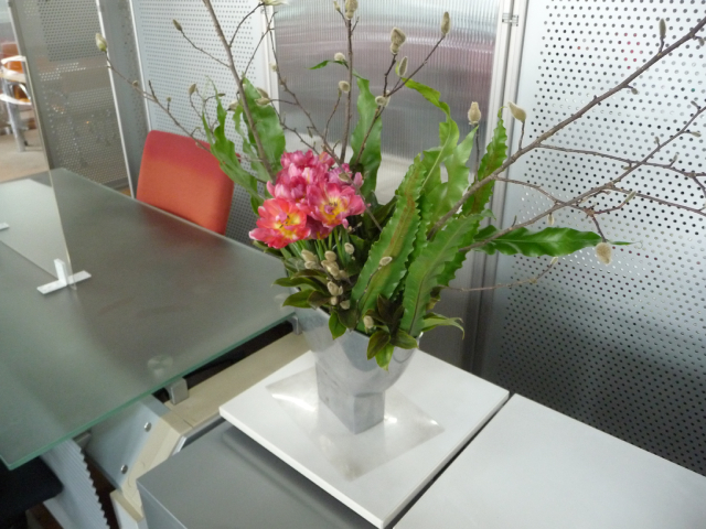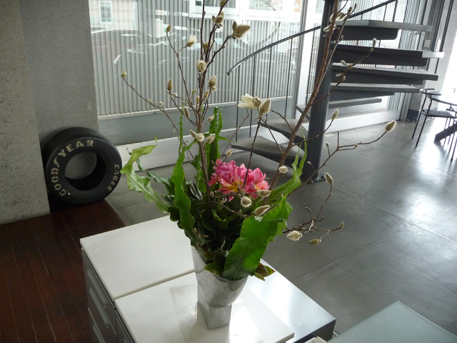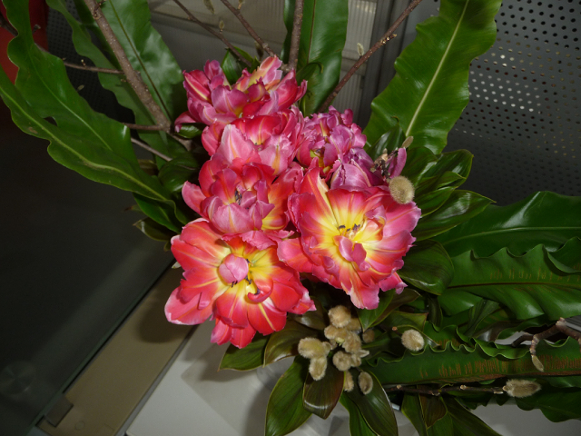 姫コブシ、チューリップ、タニワタリ、ドラセナ。