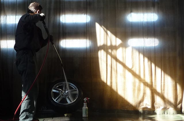 当店では、ご高齢の方やお身体の不自由なお客様へ、タイヤの持ち運びを無料でお手伝いするボランティアサービスを行っております。タイヤ交換が大変・・そんな時は、どうぞお気軽にご相談ください。画像は、交換後のタイヤを丁寧に洗浄している様子です。洗い終えたタイヤは、清潔な状態でタイヤカバーに包み、心を込め…